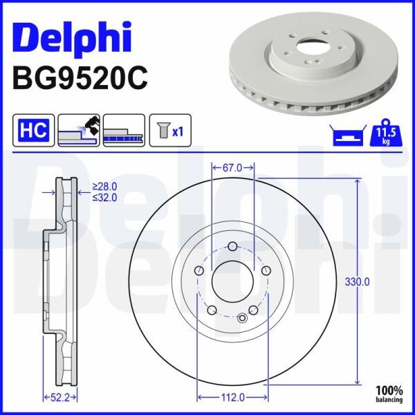 DELPHI Brzdový kotúč DELPHI BG9520C (BG9520C)